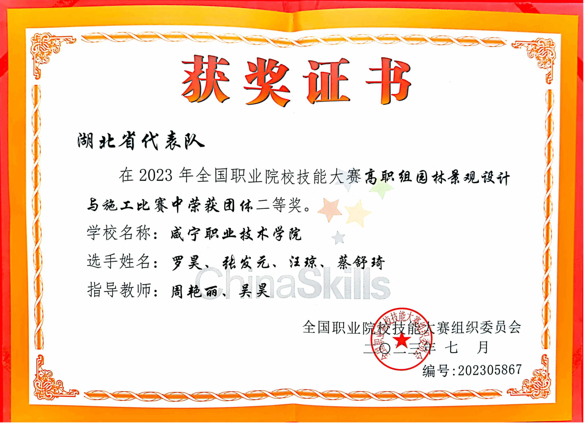7月24日至7月26日,2023年全国职业院校技能大赛“园林景观设计与施工“赛项在上海农林职业技术学院举行。全国职业院校技能大赛是我国目前社会影响最大的国家级职业院校技能赛事,此次比赛共有来自全国各地的55支代表队的220名参赛选手参加了比赛,Beat365官网Beat365中文官方网站学生代表队荣获”园林景观设计与施工”团体二等奖。
