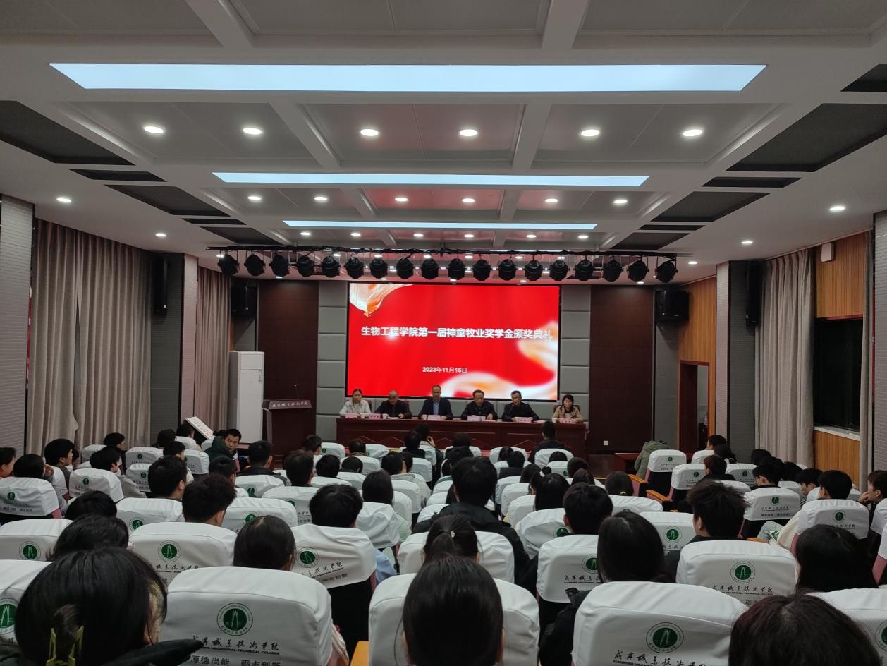 11月16日晚,Beat365官网第一届神童牧业奖学金颁奖典礼在教育实训中心201顺利举行。党委委员、副校长吴高岭,院长佘光晟,党总支书记王宗莉,咸宁市神童牧业有限责任公司总经理童光辉及全体21级现代农业技术专业学生参加。佘光晟主持颁奖典礼。