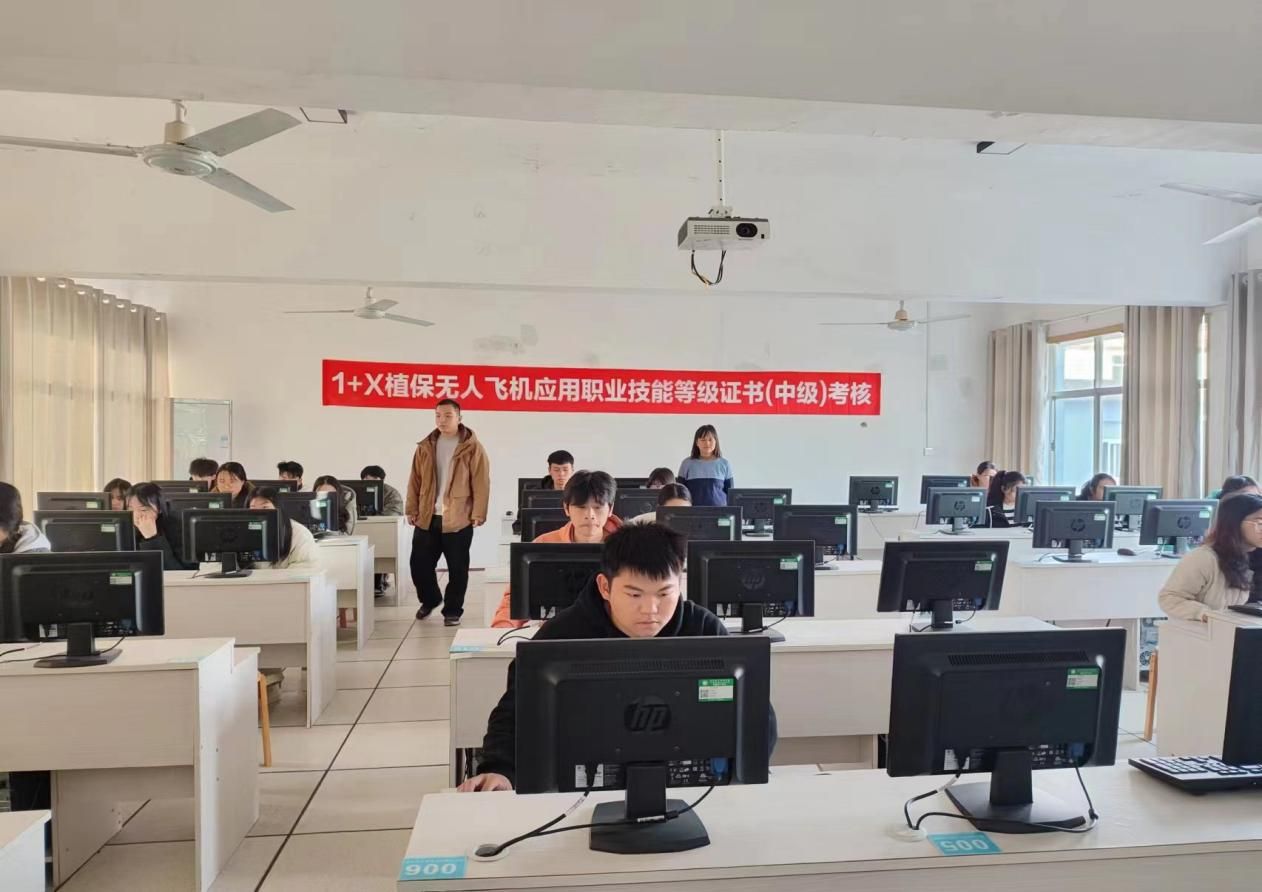 “1+X”植保无人飞机应用职业技能等级证书考试内容分为理论和实操两部分,分别在生物楼401与体育场进行。考试过程纪律严明,平台稳定,充分保证了考试的顺利进行。