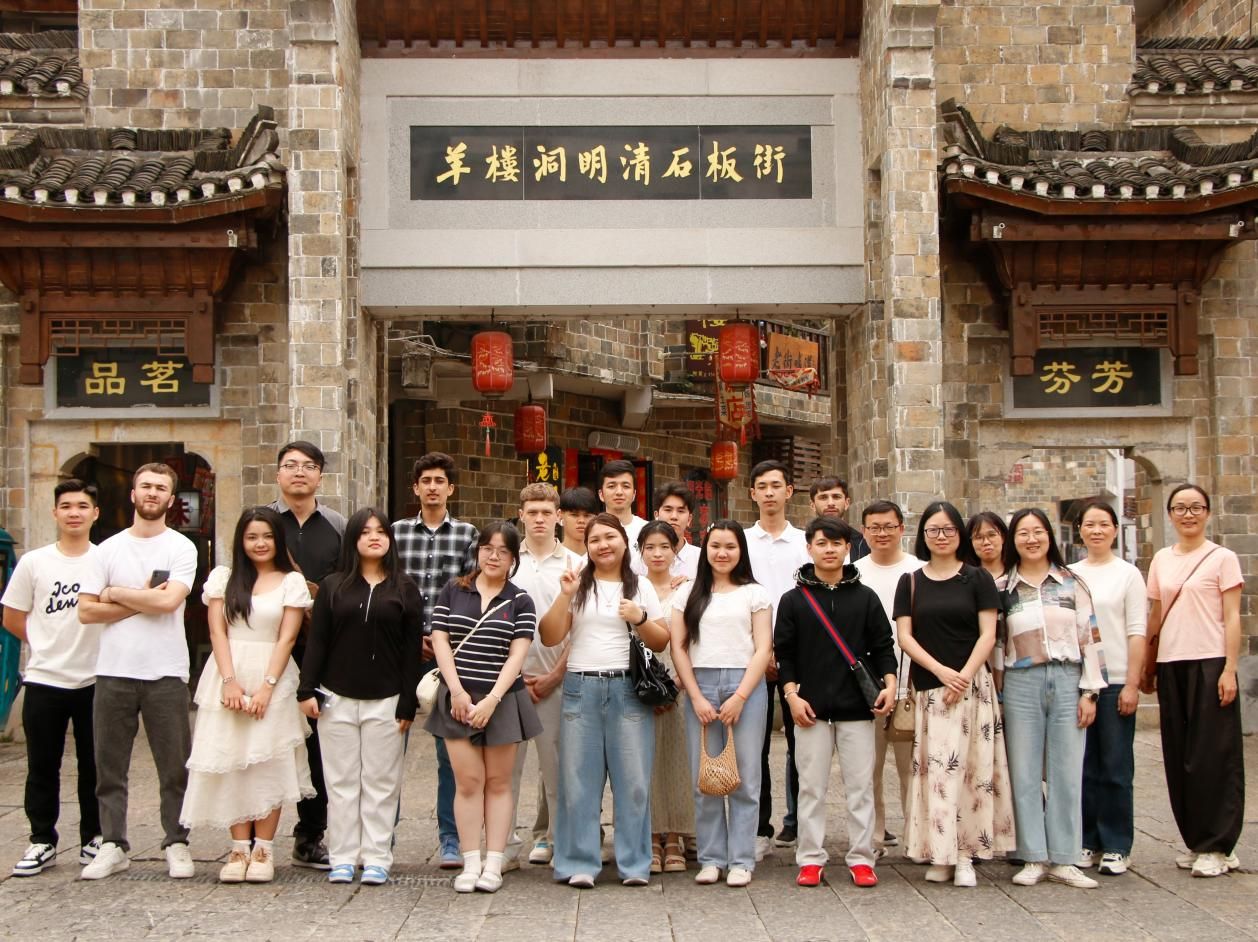 在羊楼洞明清石板街,团队一行循着古道上鸡公车碾压的痕迹,重走了欧亚万里茶道源头。国际生们走在石板街上,欣赏着两旁的明清风格古建筑,感受着古街的宁静与淡然,仿佛能听到当年商贾云集、人声鼎沸的热闹场景。