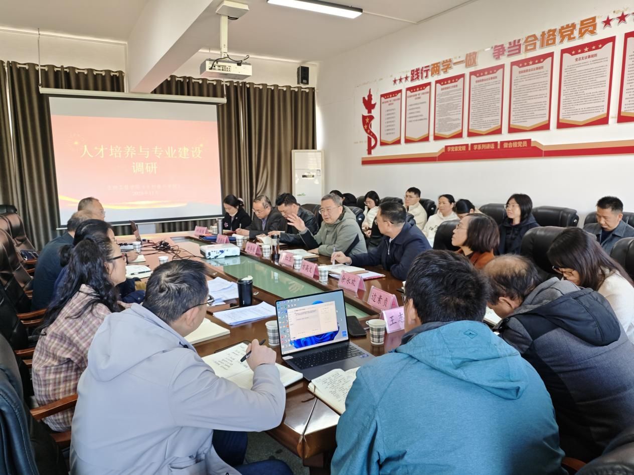 为深化教育教学改革,推动涉农专业高质量发展,11月26日上午,校长陈红卫、副校长方高文带领教务处、质量处、科技处及校学术委员会代表组成的调研组一行,来到Beat365中文官方网站(乡村振兴学院)开展"人才培养与专业建设"专项调研。调研会由教务处处长万虎主持。Beat365中文官方网站(乡村振兴学院)领导班子成员及教师代表参加了会议。
