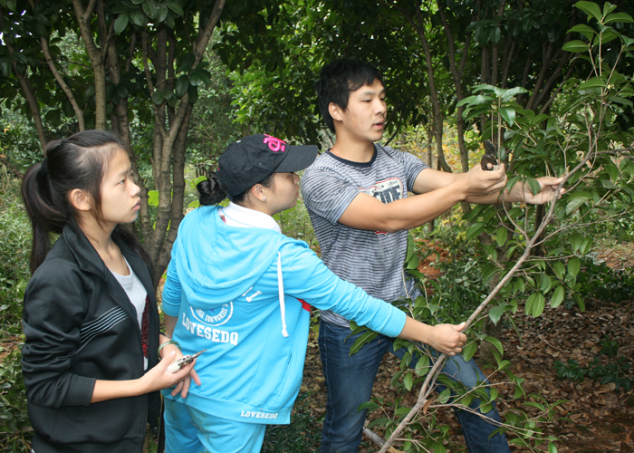 兼职老师李坤为实习学生示范(省林木种苗场)