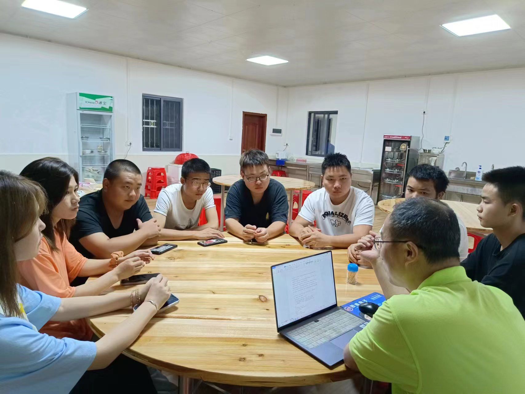 在韶关明雄猪场,场长张国斌介绍们猪场现代化的养猪设备,猪场生产和扩建情况,并就养猪技术问题与万海峰一行进行探讨。他高度评价了在猪场实践的学生,表示学生们能吃苦耐劳,虚心学习,主动发现并解决问题,期待更多的学生来到猪场实践,为公司储备实践技能型人才。