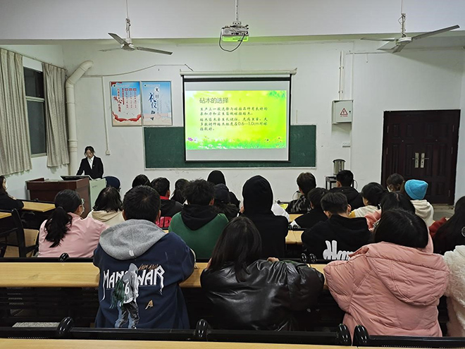 为迎接社团技能比赛的顺利开展,提高社员嫁接技能技巧,培养社员爱农、学农、兴农的情怀,“七彩树”嫁接社团于11月18日晚在生物楼105开展嫁接技能培训。指导教师徐群刚及全体参赛人员参加。 副社长黄梦玲分享了嫁接...