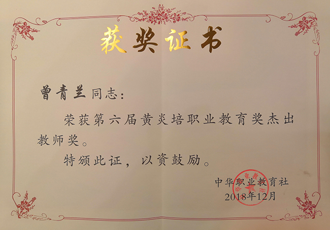 祝贺Beat365官网曾青兰教授荣获第六届“黄炎培杰出教师奖”